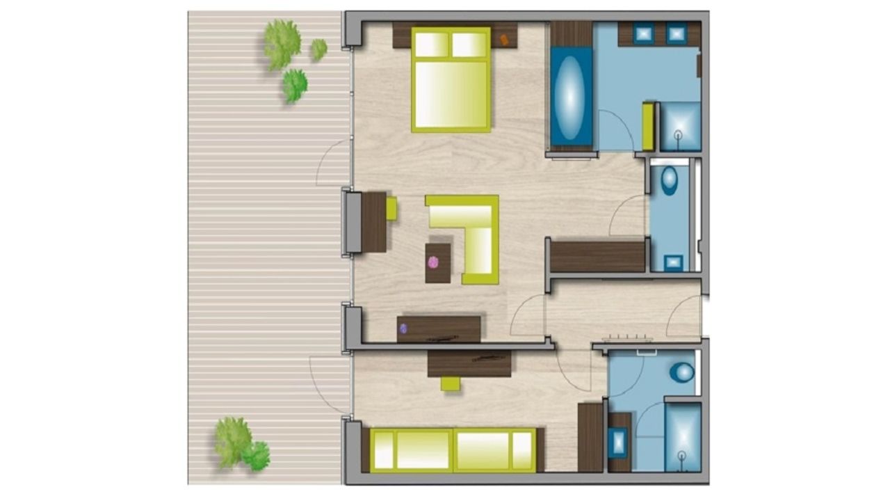 - Zwei getrennte Schlafräume, Badezimmer und WC für mehr Privatsphäre